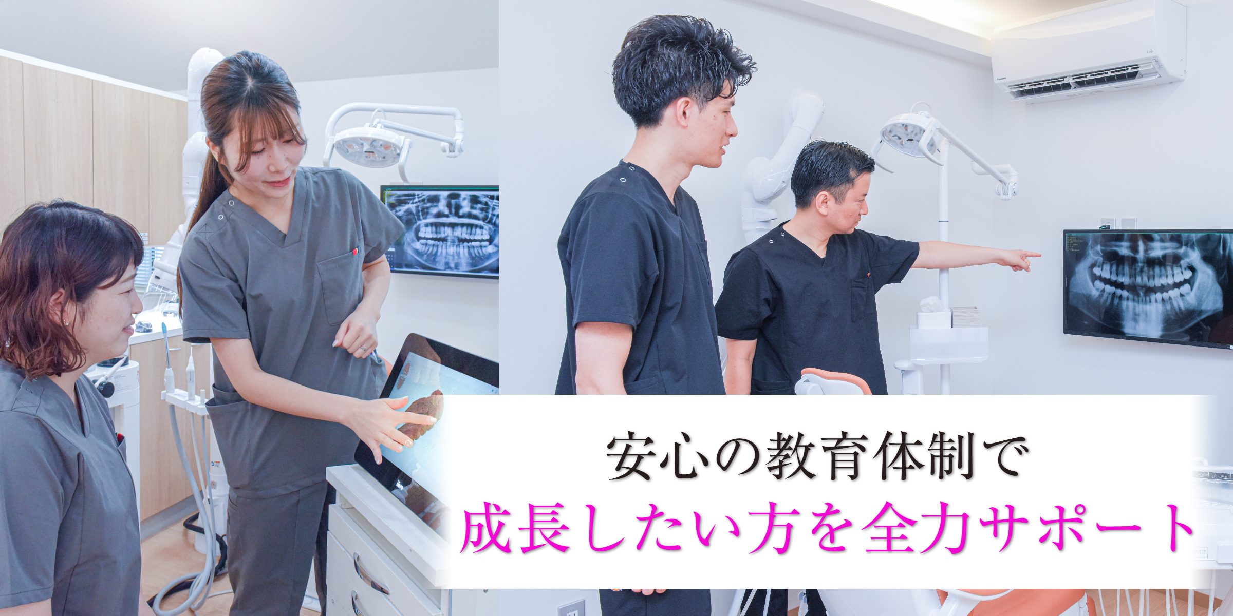 力を入れている治療は、歯周病治療、矯正治療、予防歯科です。保険診療はもちろん、自費診療にも幅広く対応しており、それぞれの職種で専門的な知識や技術を身に付けることが可能です。