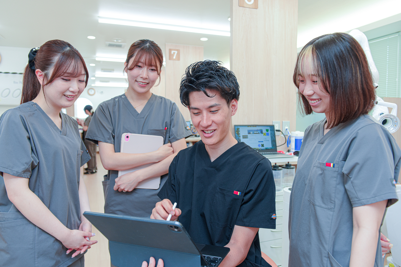 例えば歯科衛生士の方は、定期検診の主役として患者さまを総合的にサポートいただきます。歯科助手の方は、当院におけるコミュニケーションのプロです。積極的に歯科医療に参加しながら、患者さまと医療者の架け橋になっていただきたいと考えています。
